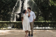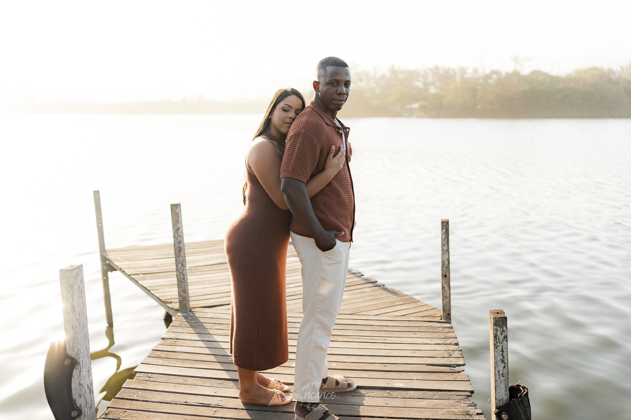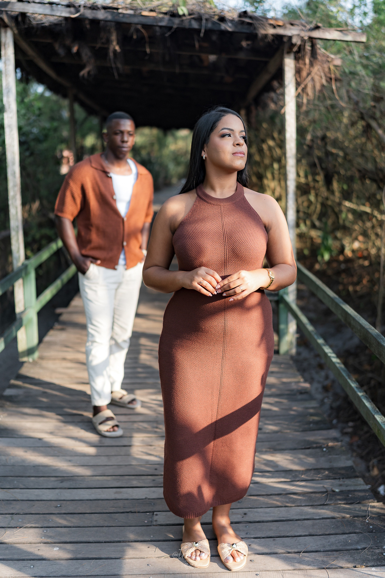 Seguimos para o bosque da Ilha 3, onde Raíza e Matheus viveram momentos de muita espontaneidade. Entre abraços, risadas e olhares apaixonados, registramos fotos românticas e naturais. Logo depois, encontramos a charmosa ponte de madeira, que parecia saída de um filme romântico norte-americano. Esse cenário único é um verdadeiro convite para casais que desejam um ensaio apaixonante.
