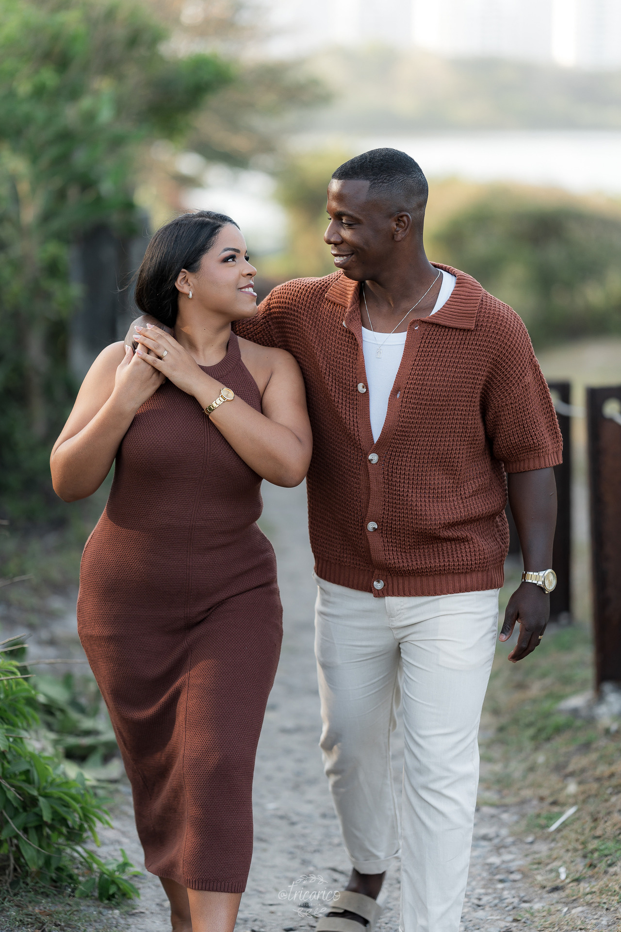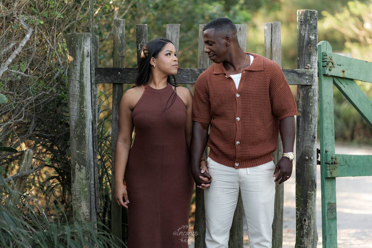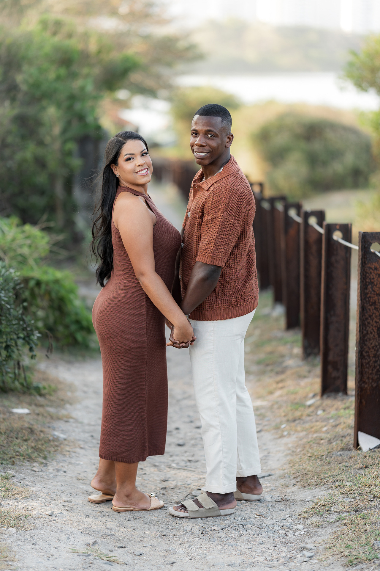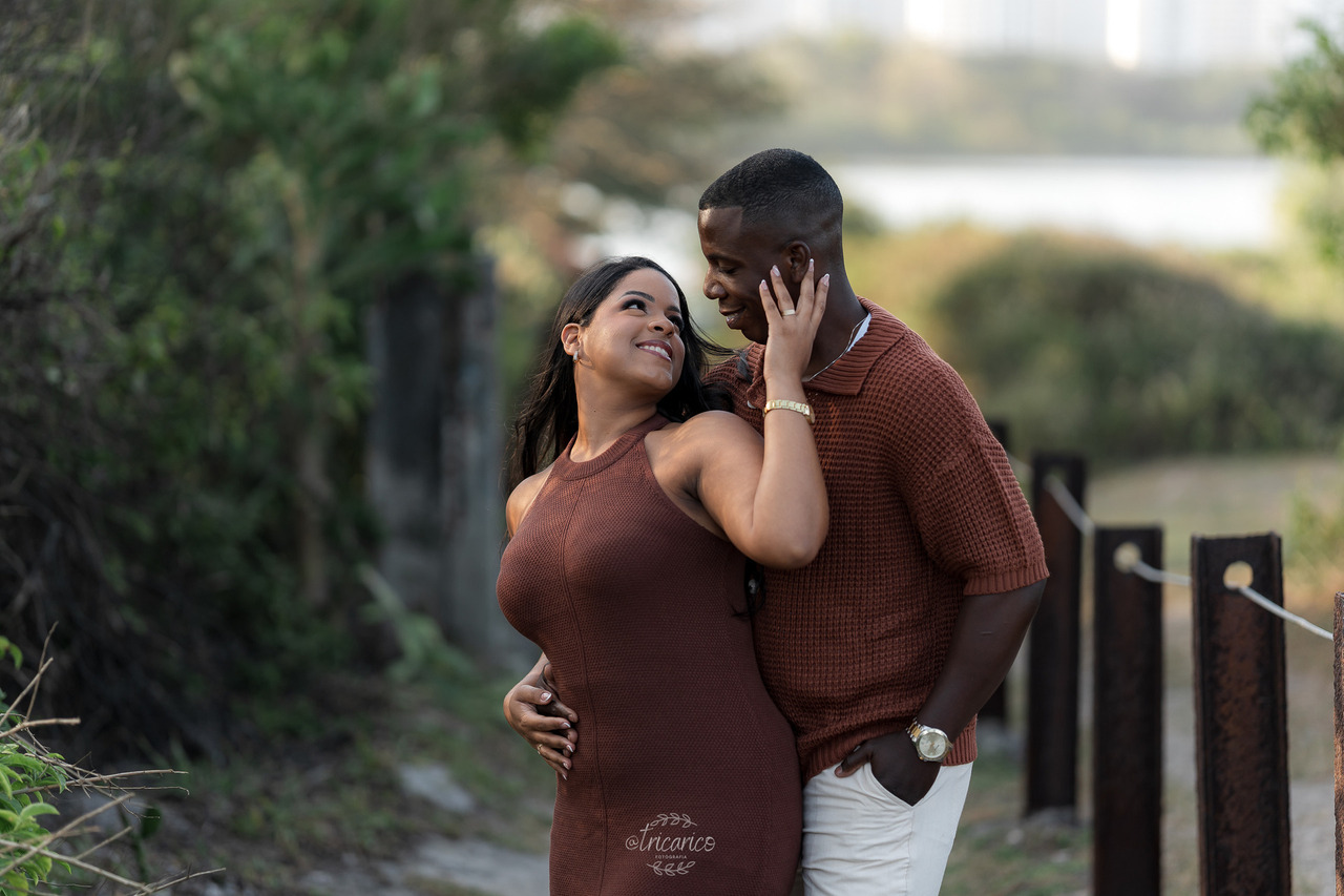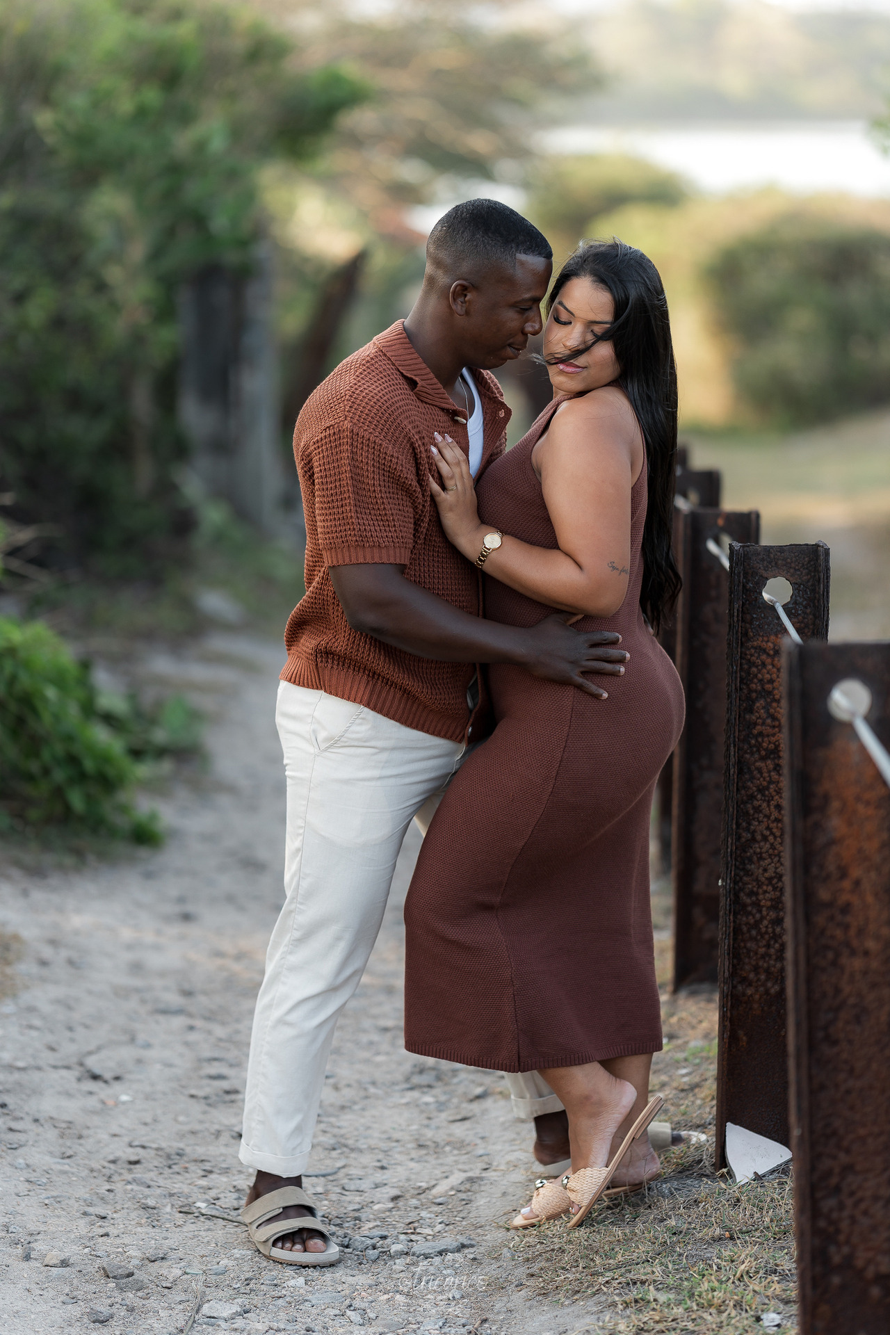 sComeçamos o ensaio com o casal vestido em tons terrosos, que harmonizavam lindamente com a natureza ao redor. A trilha da Ilha 3, com sua vegetação e caminhos aconchegantes, proporcionou um início cheio de leveza e conexão.
