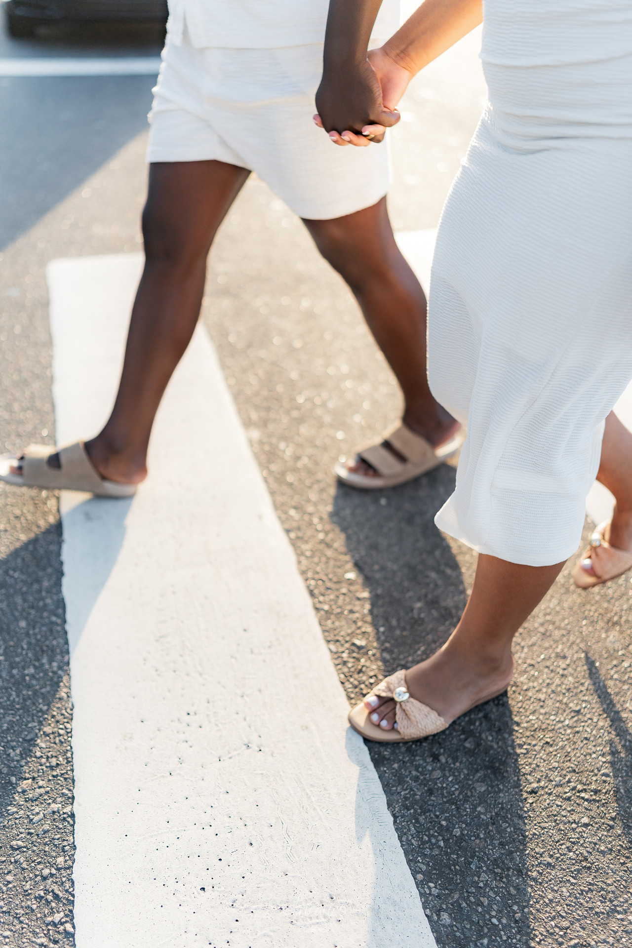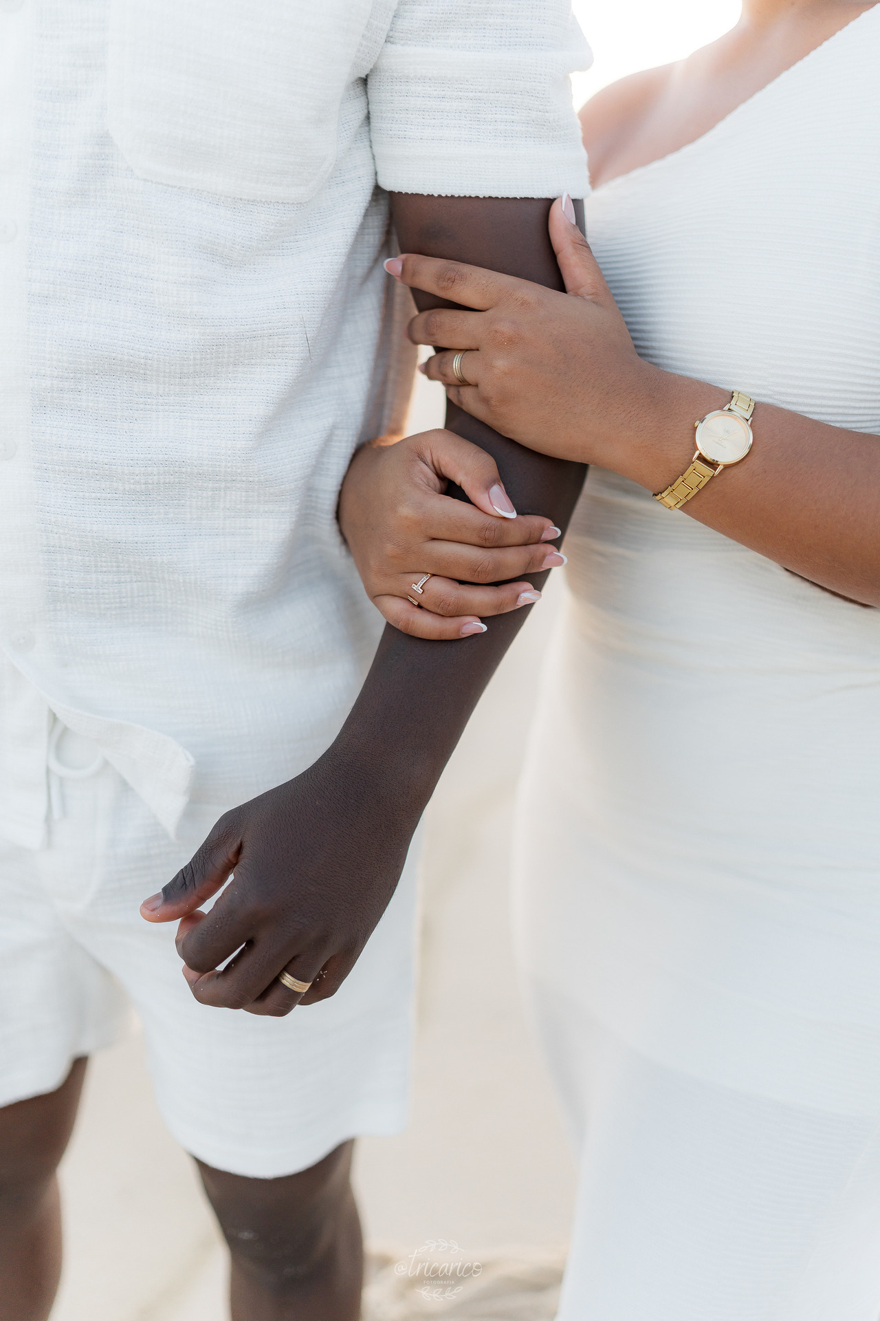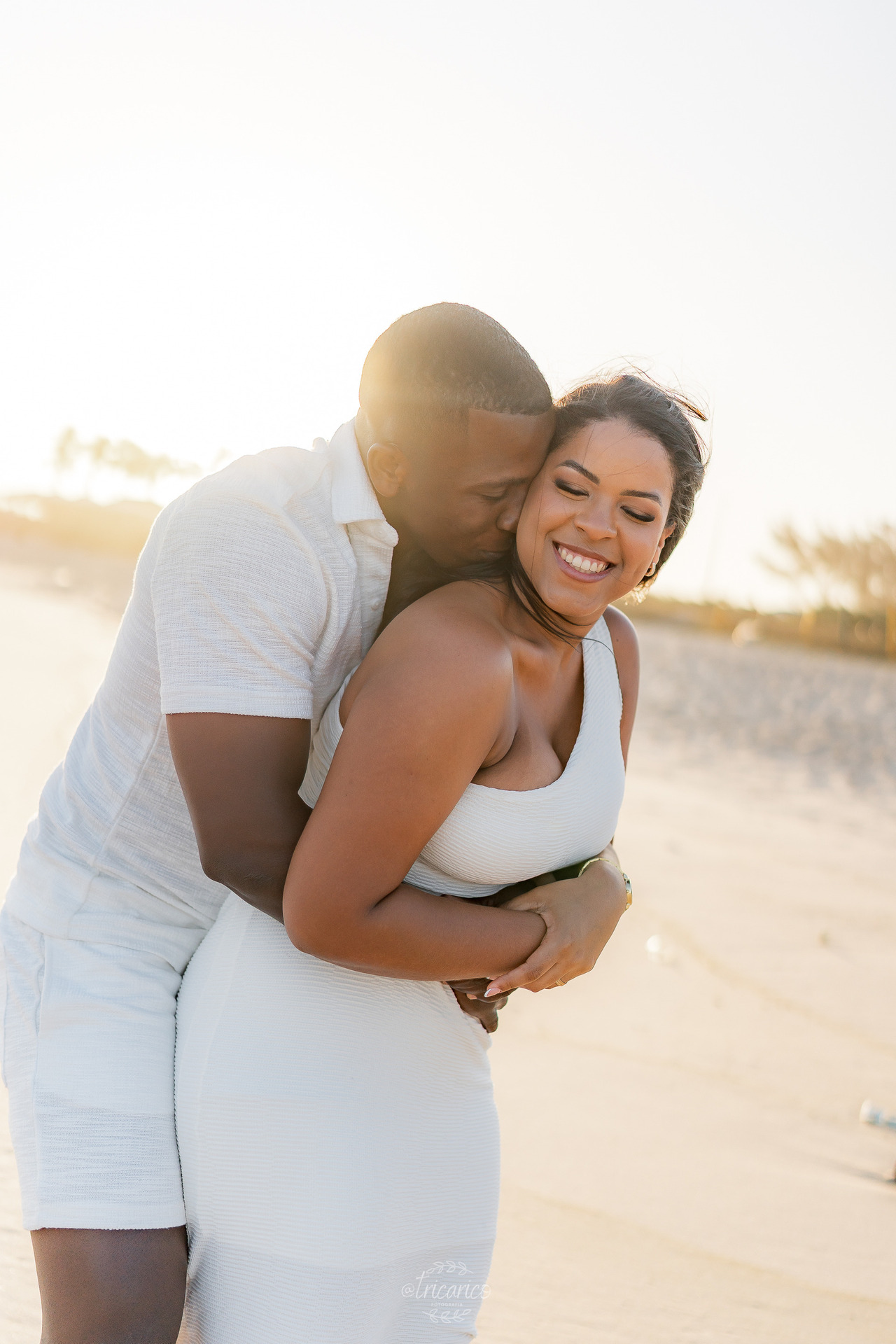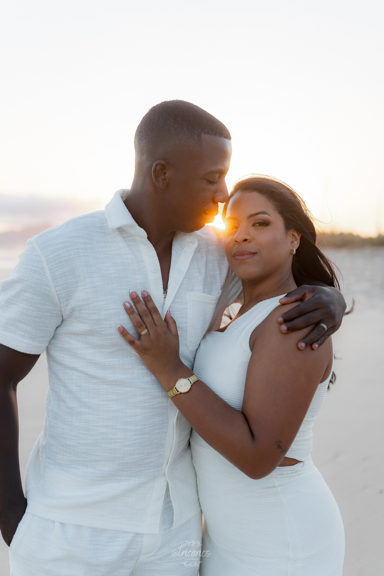 Na etapa final, o casal trocou de look: Raíza surgiu em um vestido branco que remetia à noiva, enquanto Matheus vestia roupas claras, perfeitas para o clima praiano. Foi na areia da Praia da Reserva que vivemos um dos momentos mais especiais do ensaio. O pôr do sol dourado iluminava o mar e criava uma atmosfera mágica, deixando cada clique ainda mais romântico e atemporal.