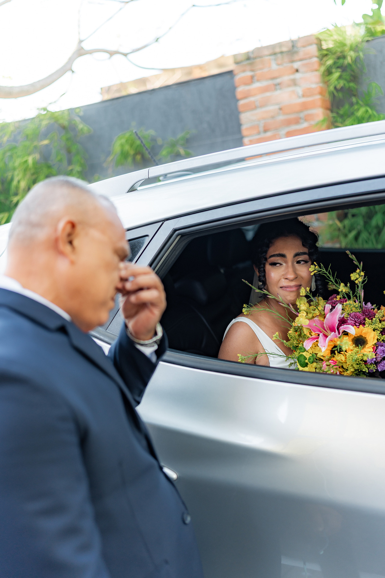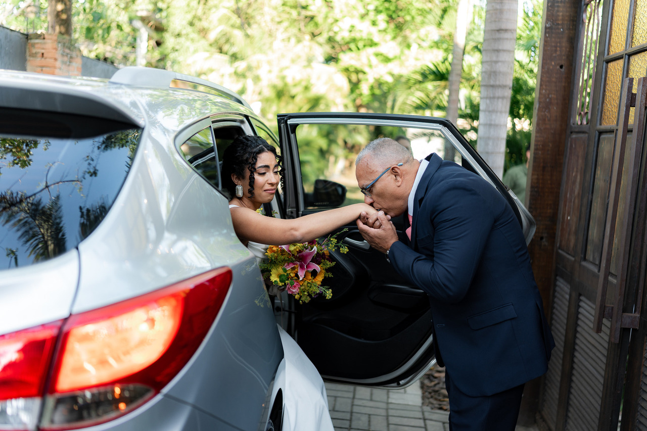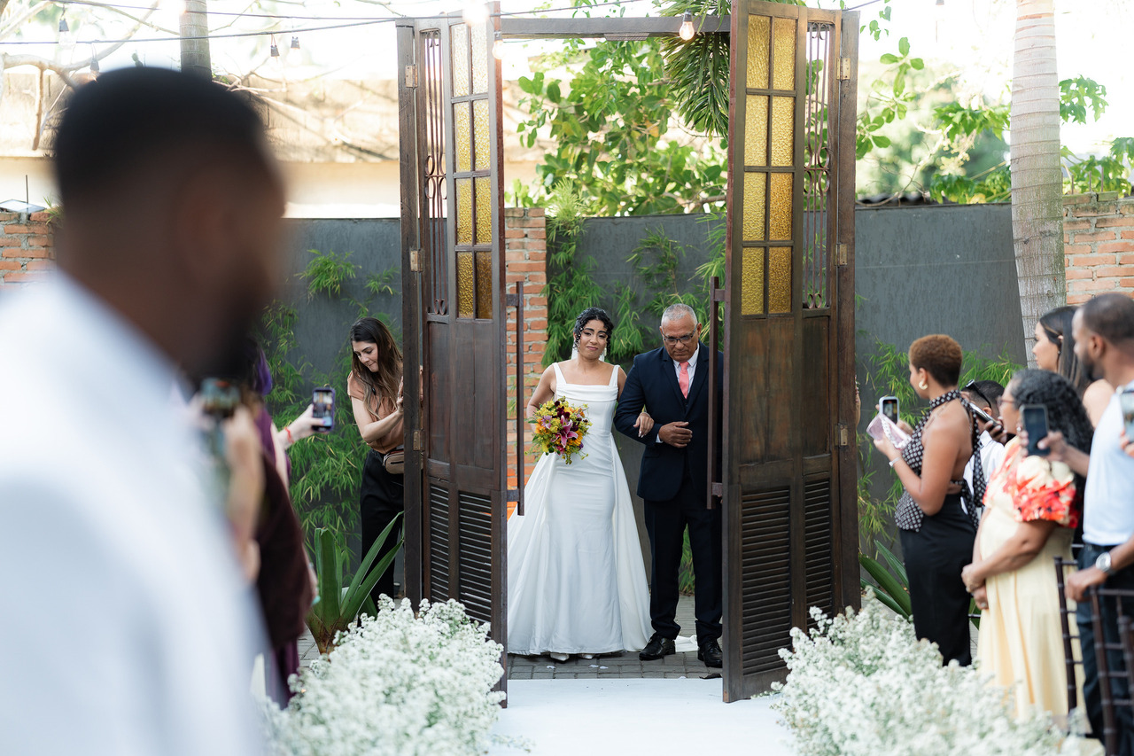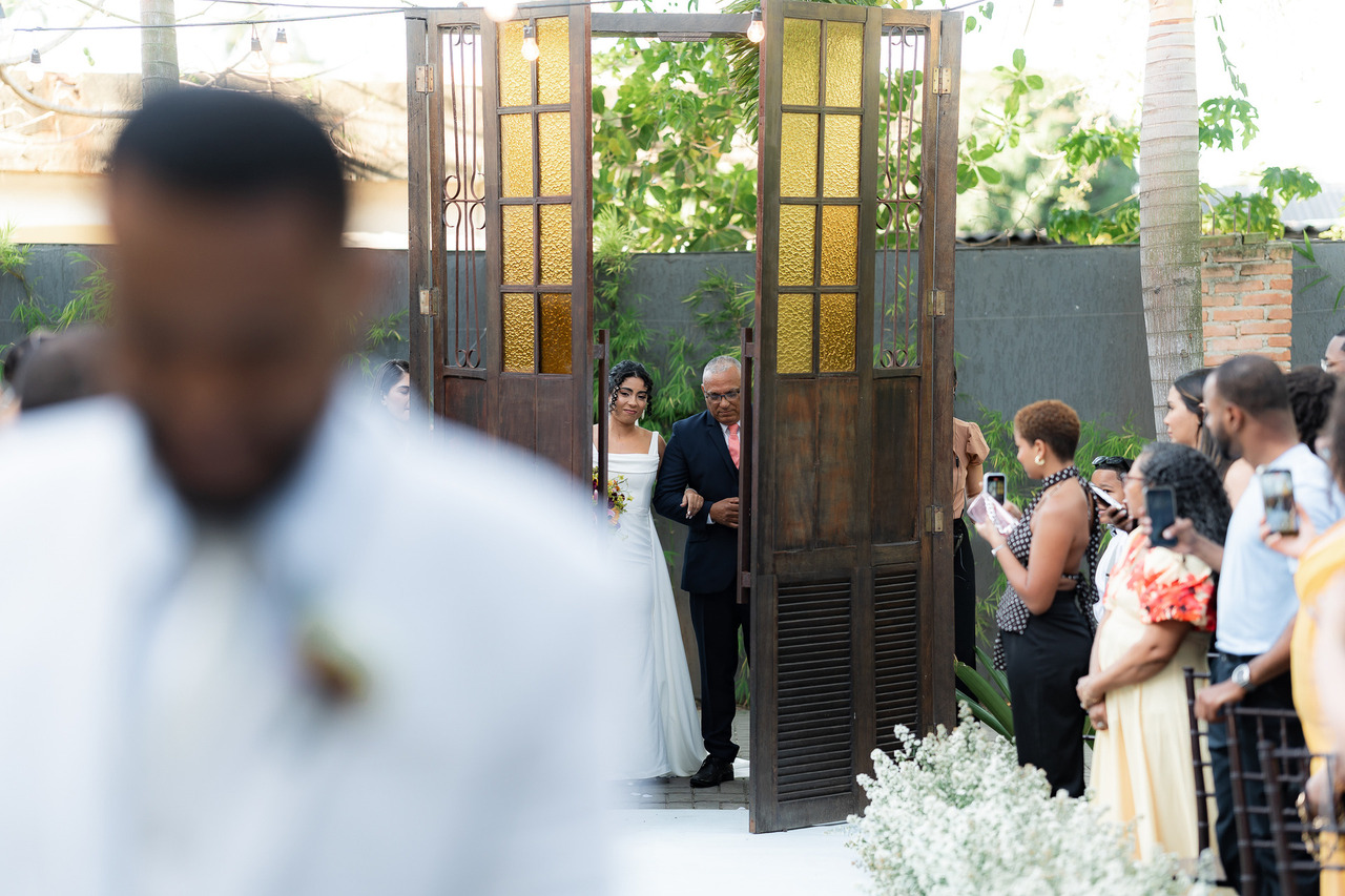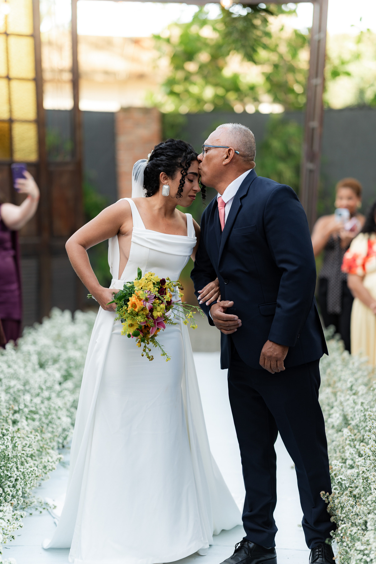 A cerimônia foi marcada pela presença de Deus, com louvores emocionantes e instantes de pura entrega. Um dos momentos mais marcantes foi quando o pai da noiva a levou até o altar, enchendo o ambiente de emoção e ternura.