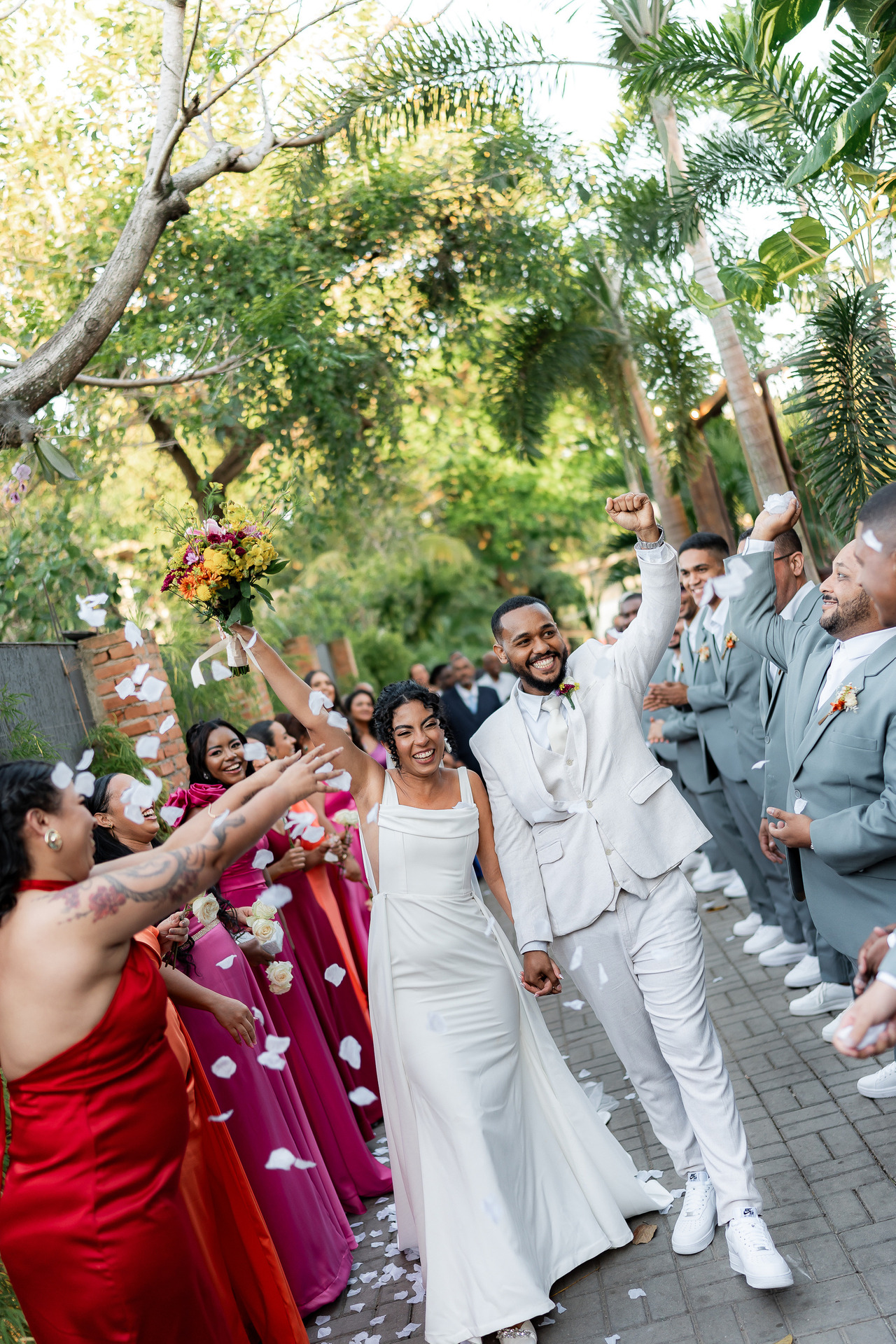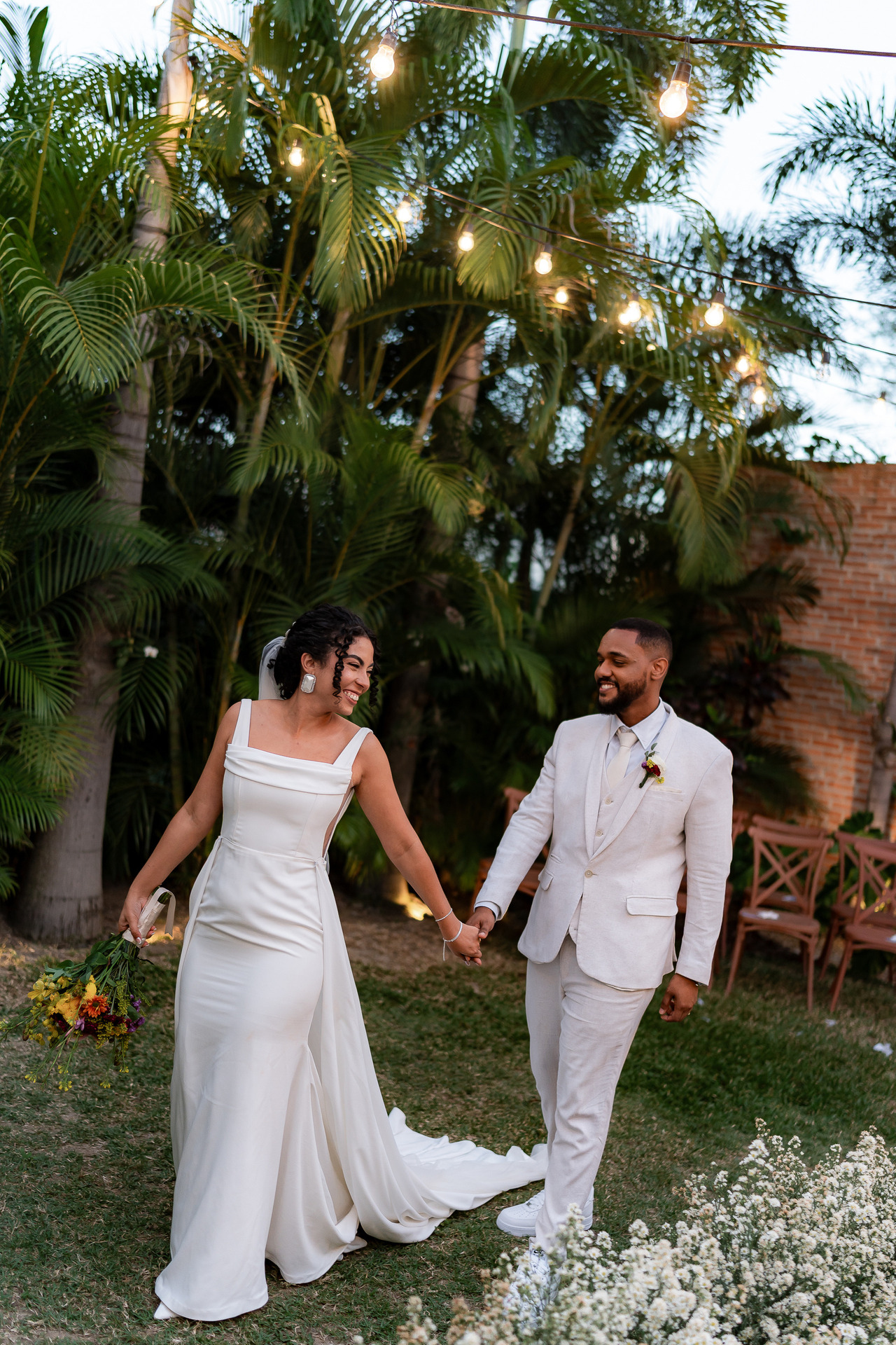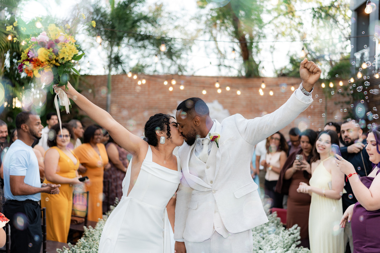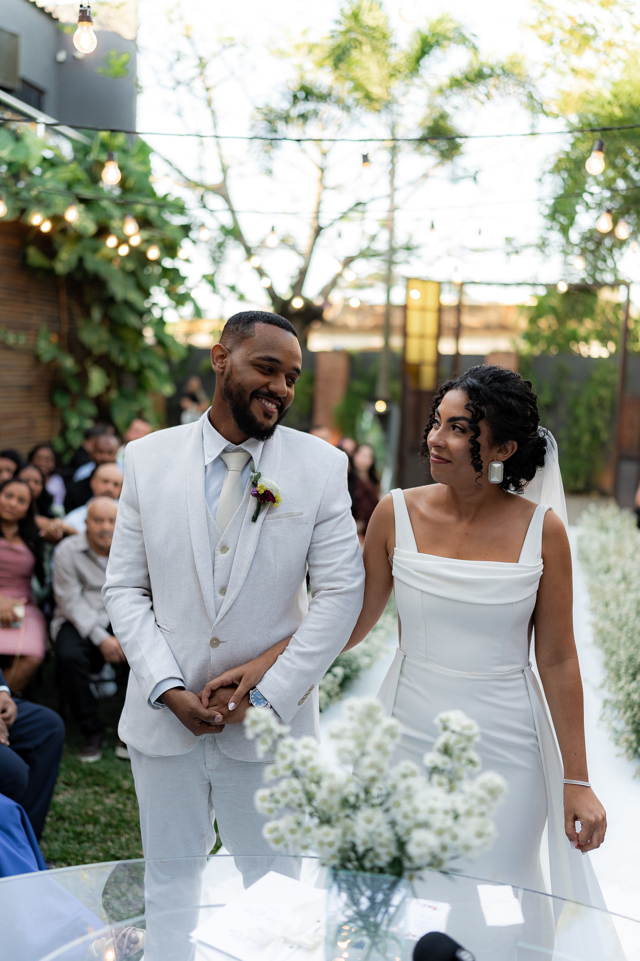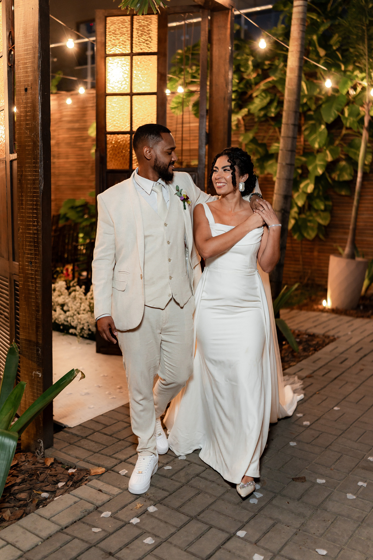Entre olhares, sorrisos e palavras de amor, a união de Letícia e Caio se tornou ainda mais especial. E a saída dos noivos, em meio a pétalas brancas, fechou a celebração com uma cena digna de cinema.