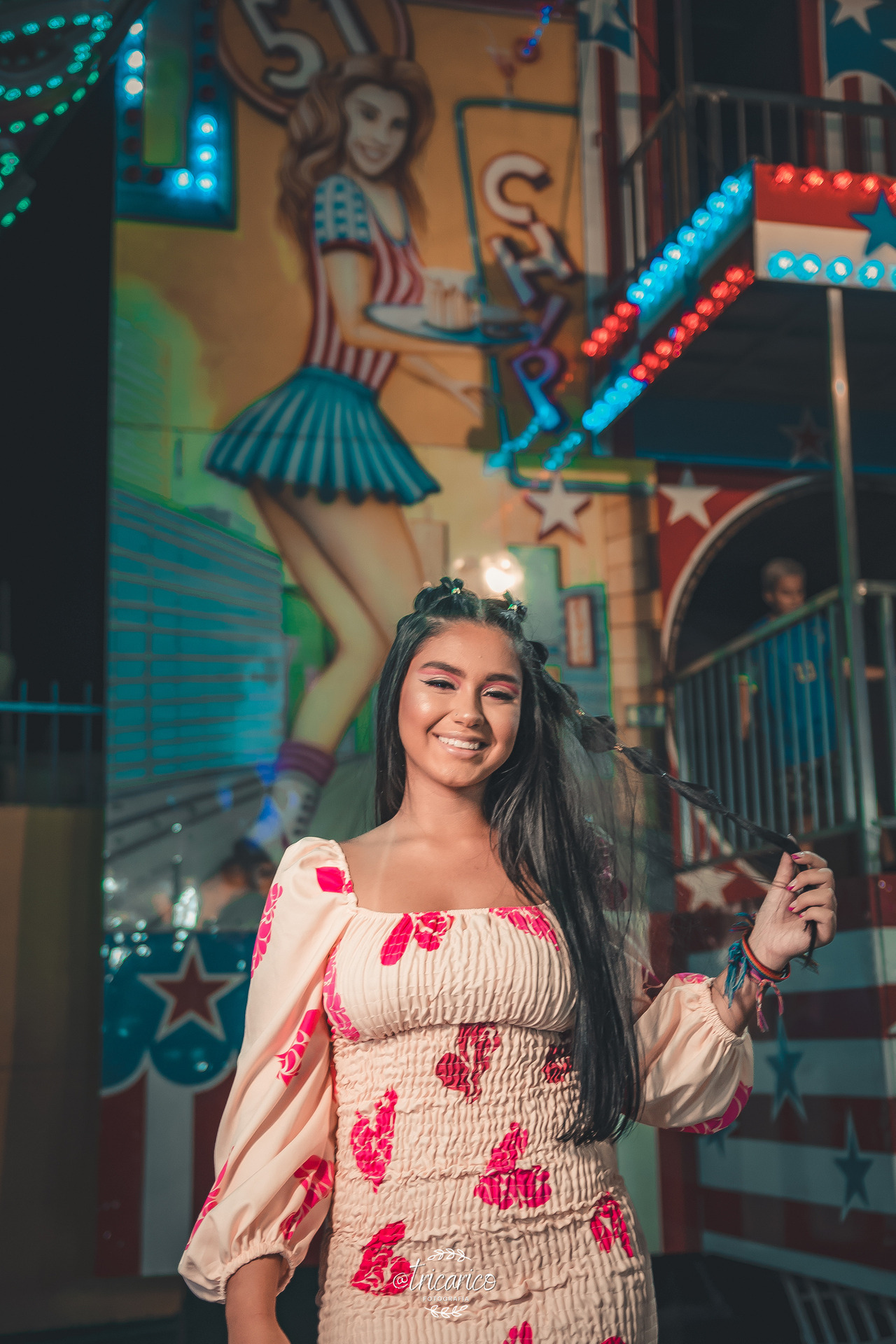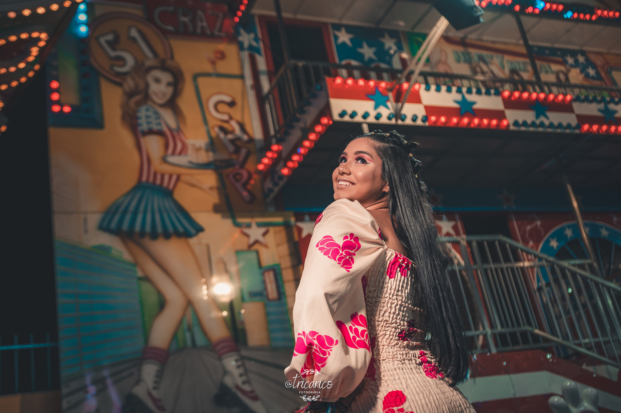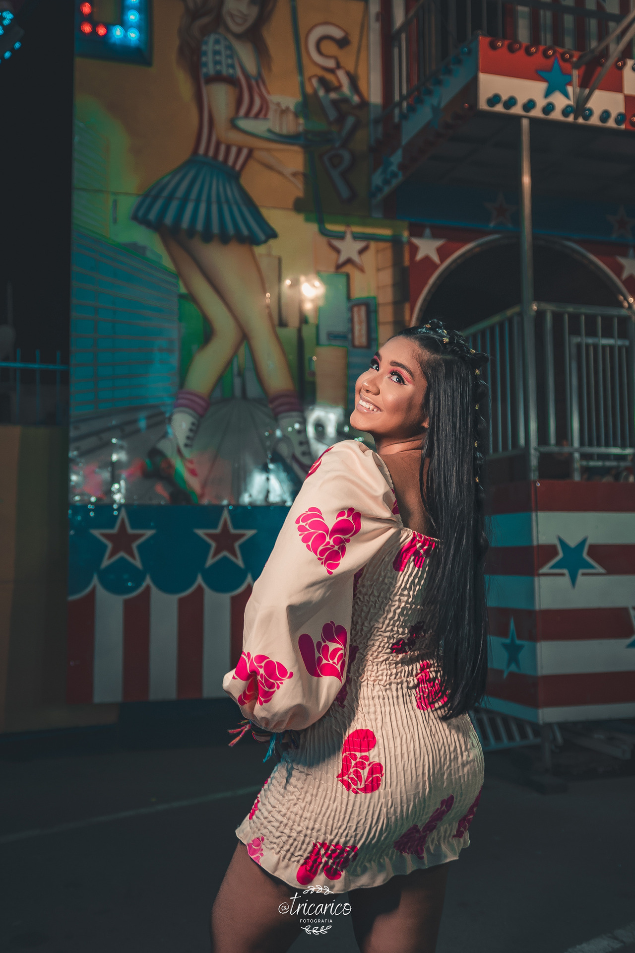 O Parque Play City, conhecido por sua atmosfera de diversão e entretenimento, provou ser um cenário perfeito para retratar a felicidade e a essência radiante de Pamela. Rodeada por carrosséis coloridos, montanhas-russas emocionantes e uma variedade de brinquedos, a debutante mergulhou em um universo lúdico onde sorrisos e gargalhadas eram constantes.