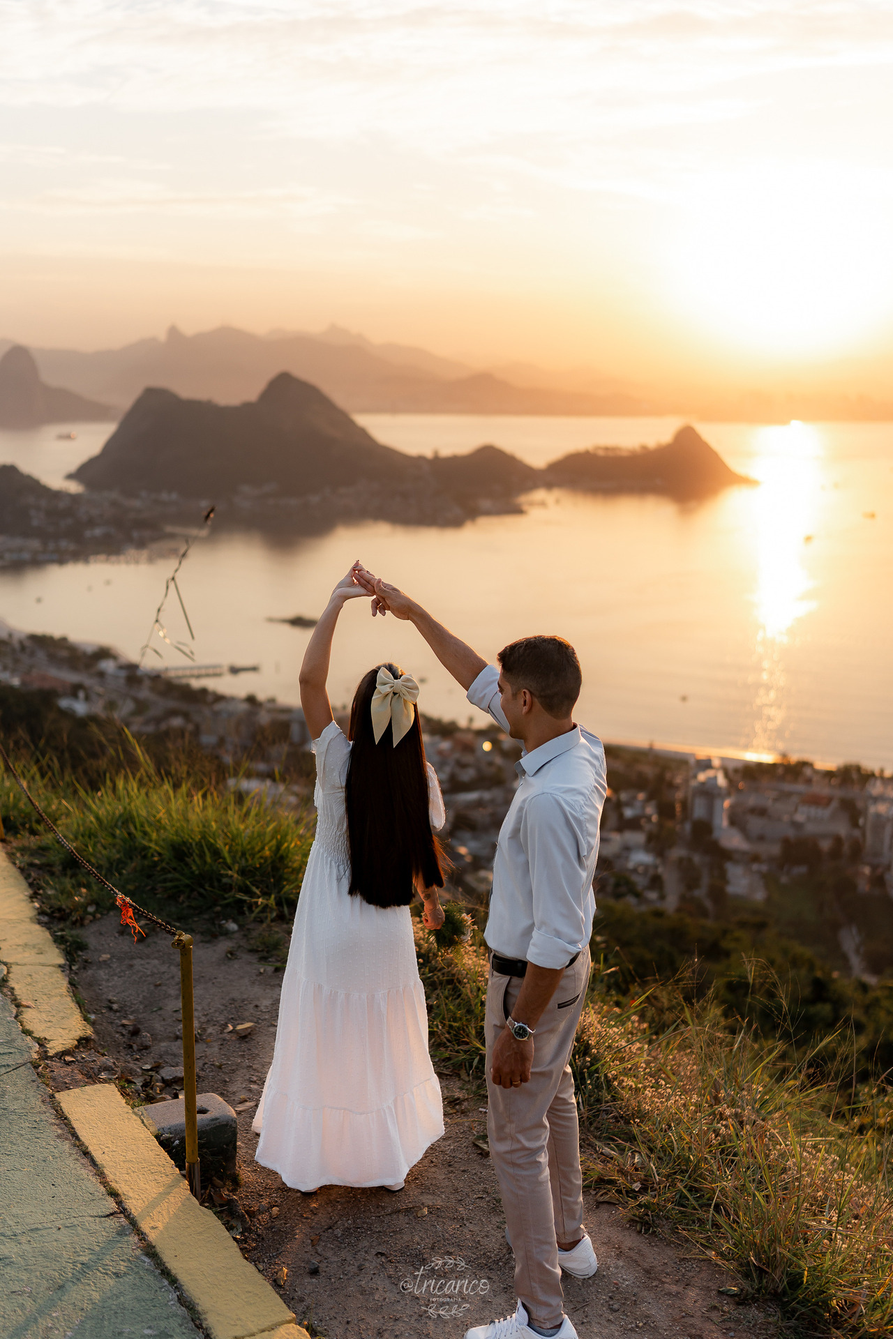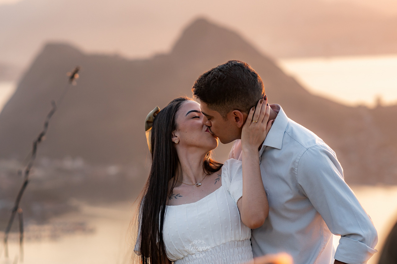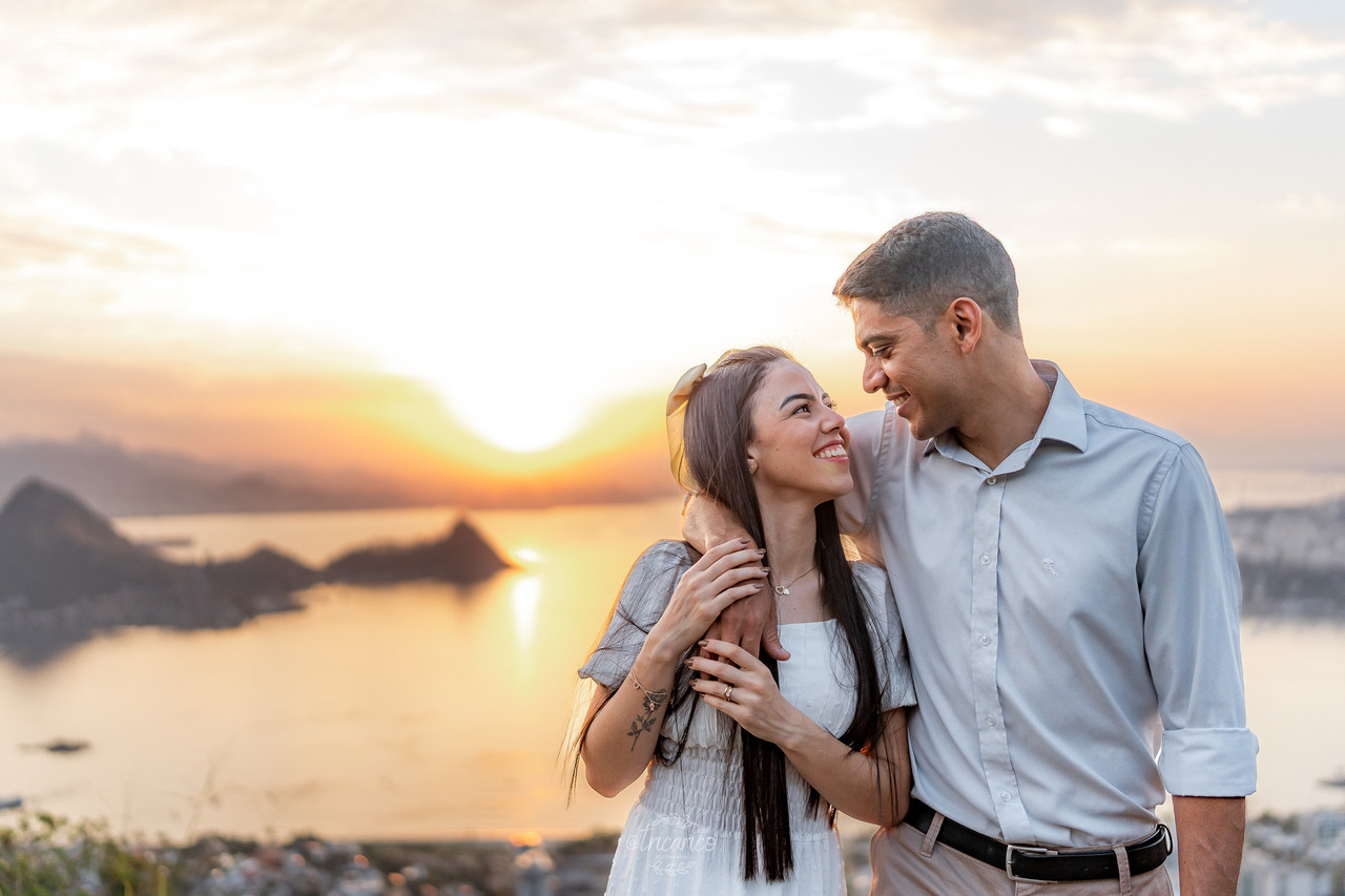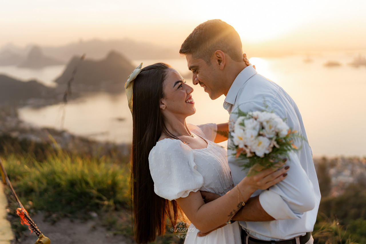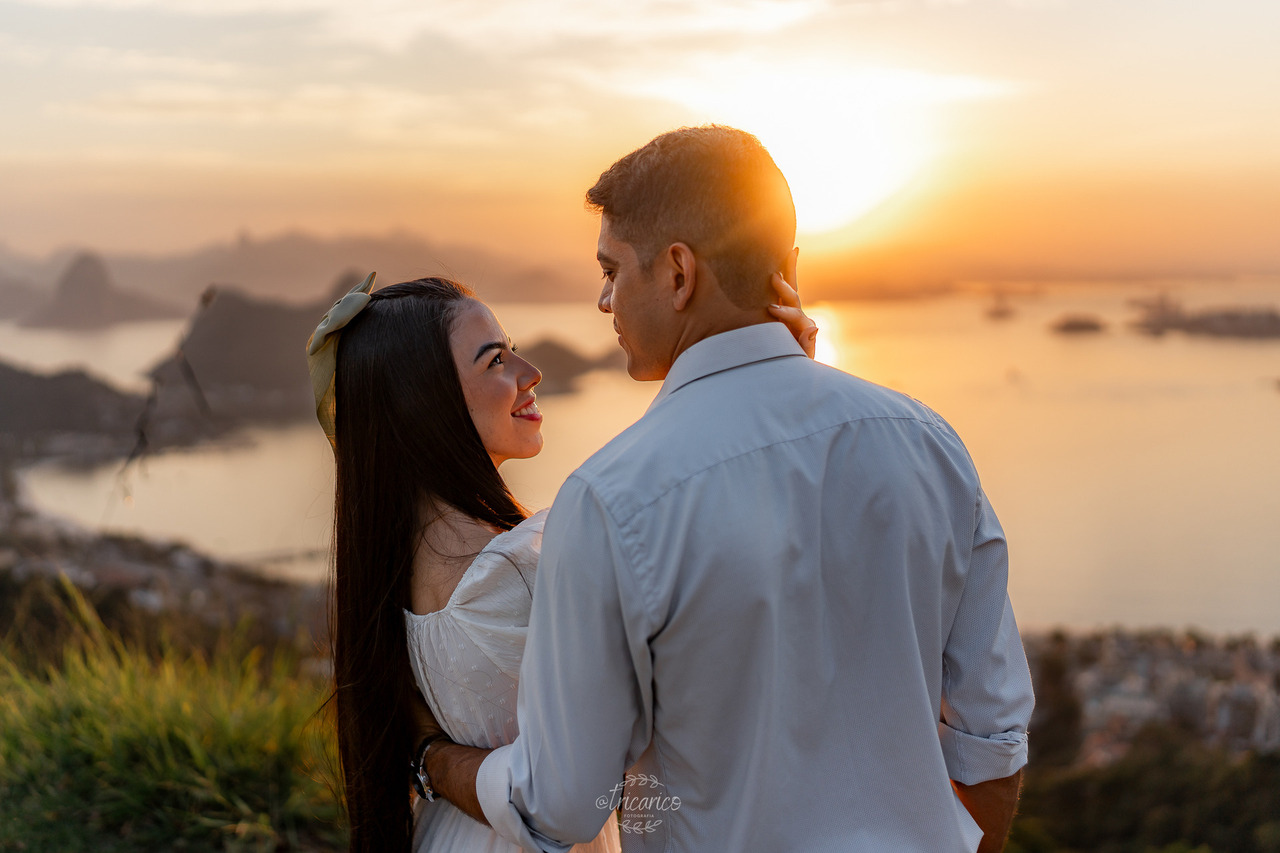 Para encerrar, seguimos até o mirante, de onde se revela uma vista espetacular de todo o Rio de Janeiro. O pôr do sol dourado somado à energia de Tamara e Fábio completou esse pré-wedding inesquecível, onde cada clique une os quatro pilares da Tricarico Fotografia: elevado, elegante, minimalista e detalhista.