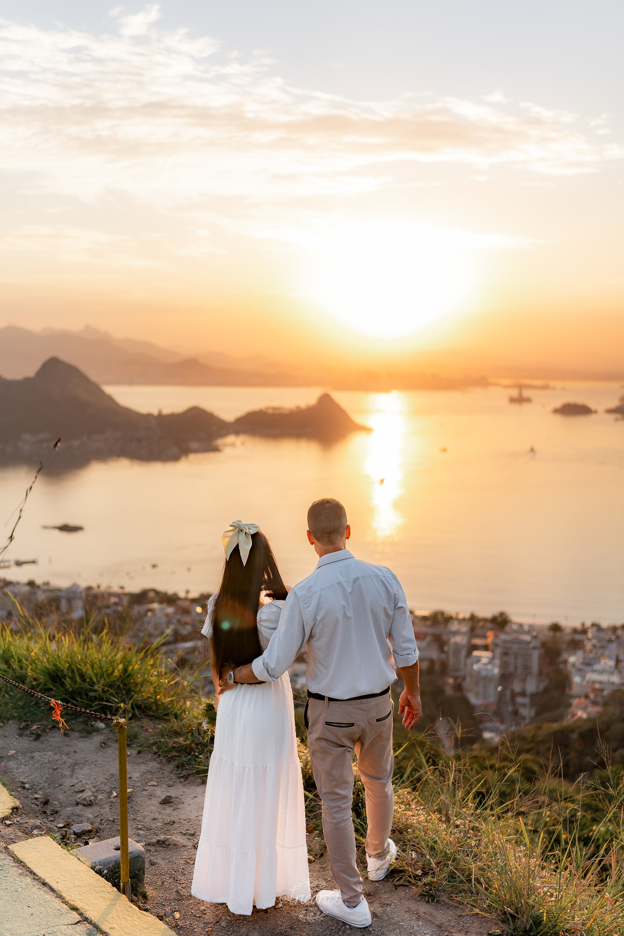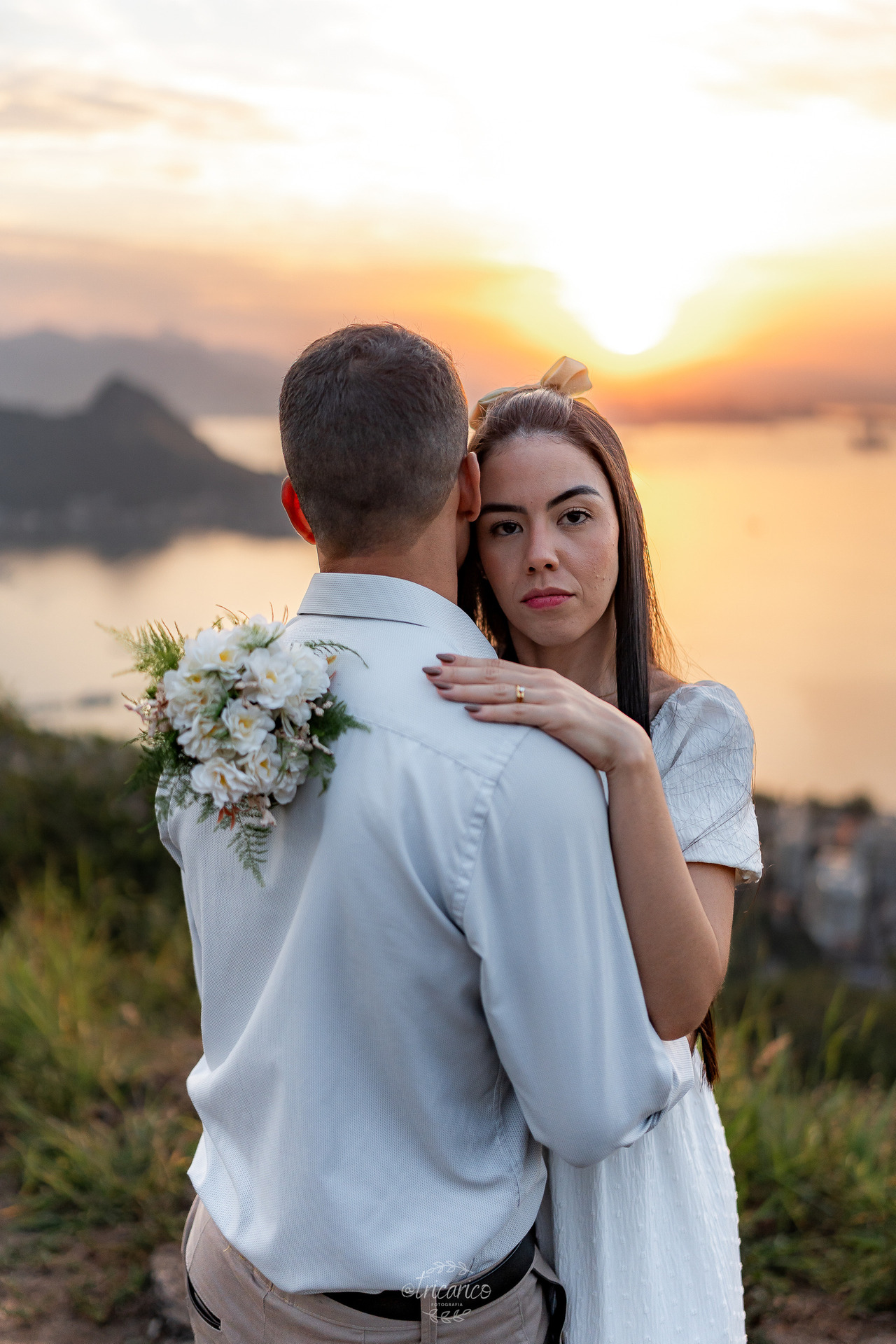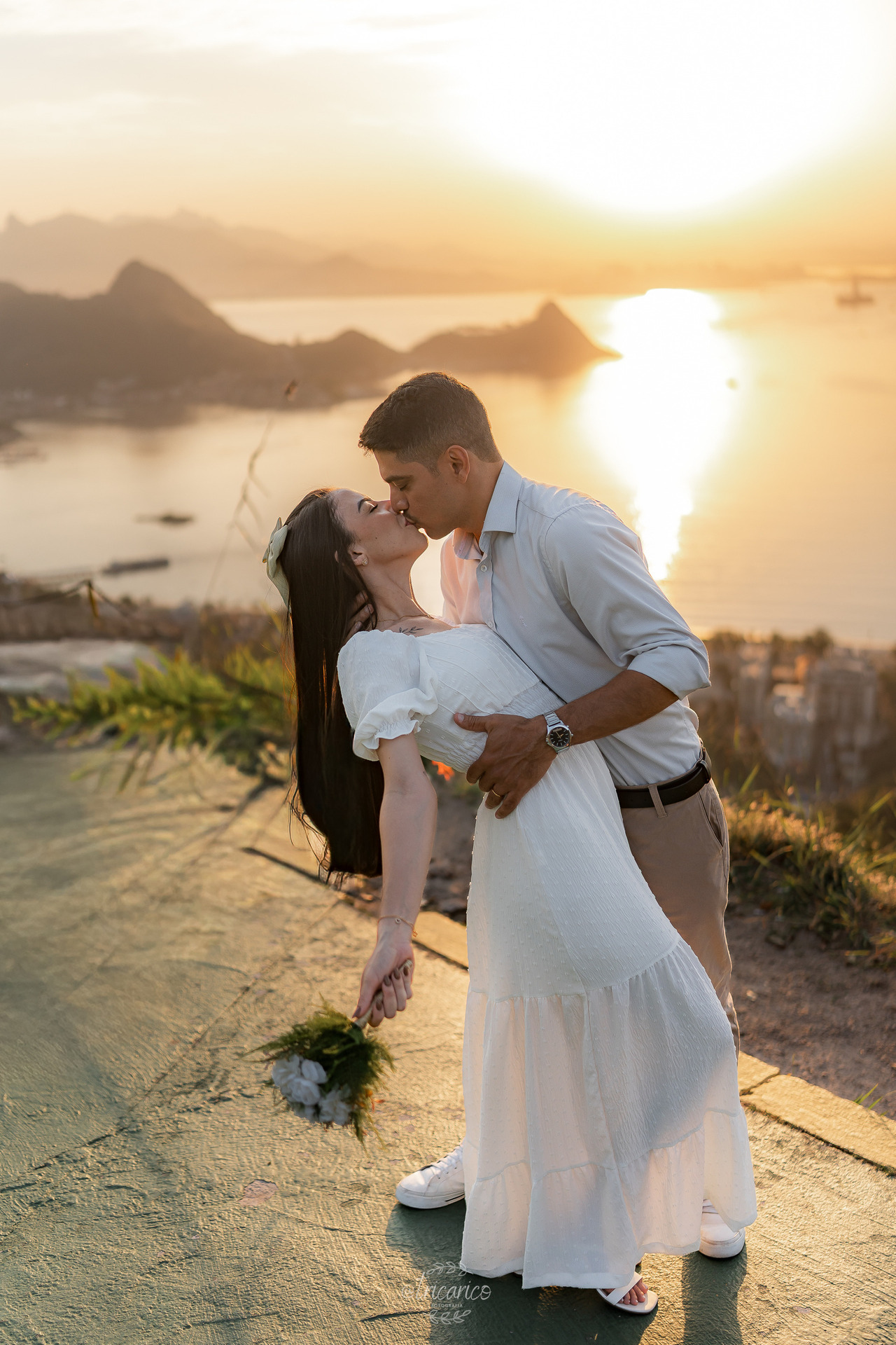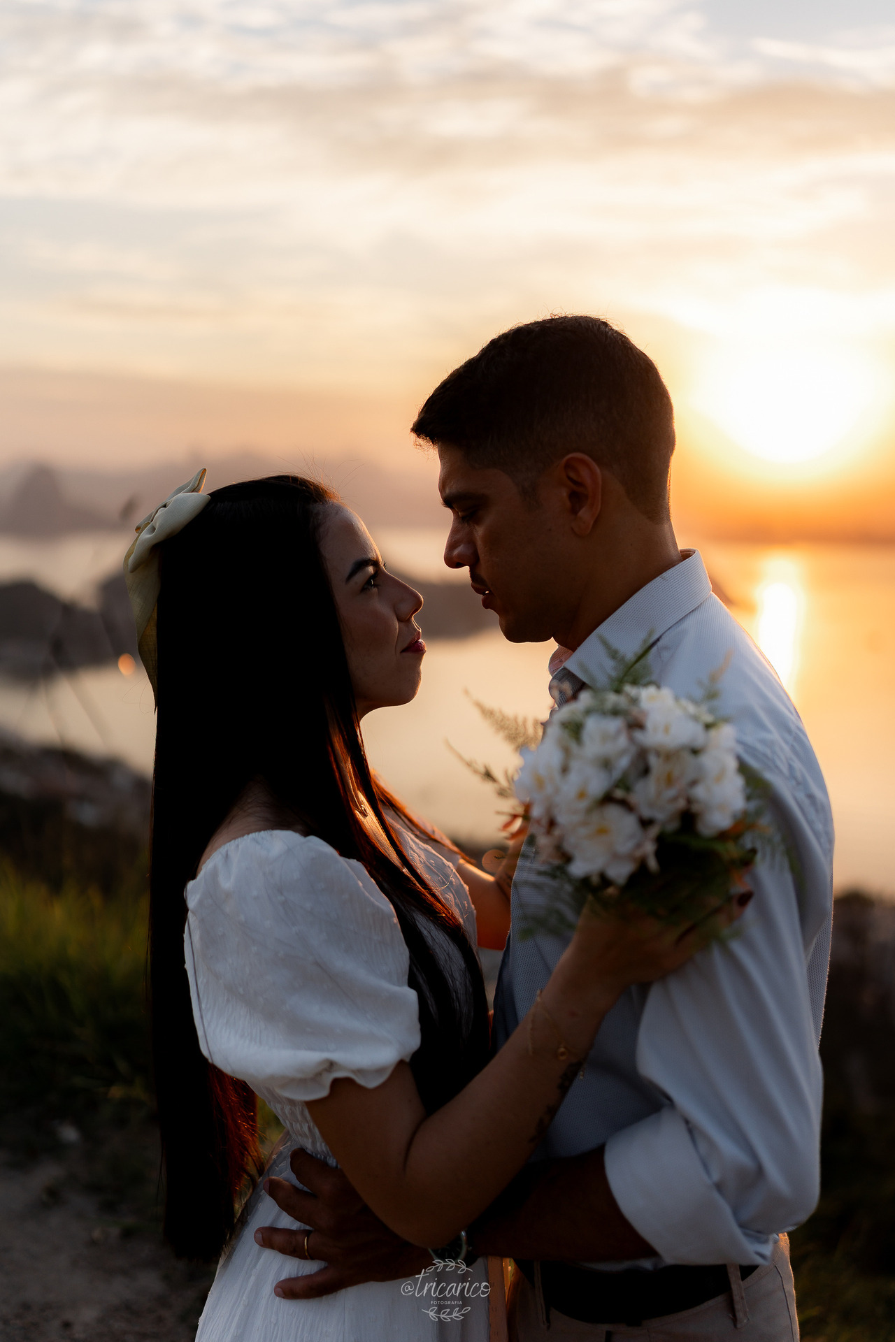Para encerrar, seguimos até o mirante, de onde se revela uma vista espetacular de todo o Rio de Janeiro. O pôr do sol dourado somado à energia de Tamara e Fábio completou esse pré-wedding inesquecível, onde cada clique une os quatro pilares da Tricarico Fotografia: elevado, elegante, minimalista e detalhista.