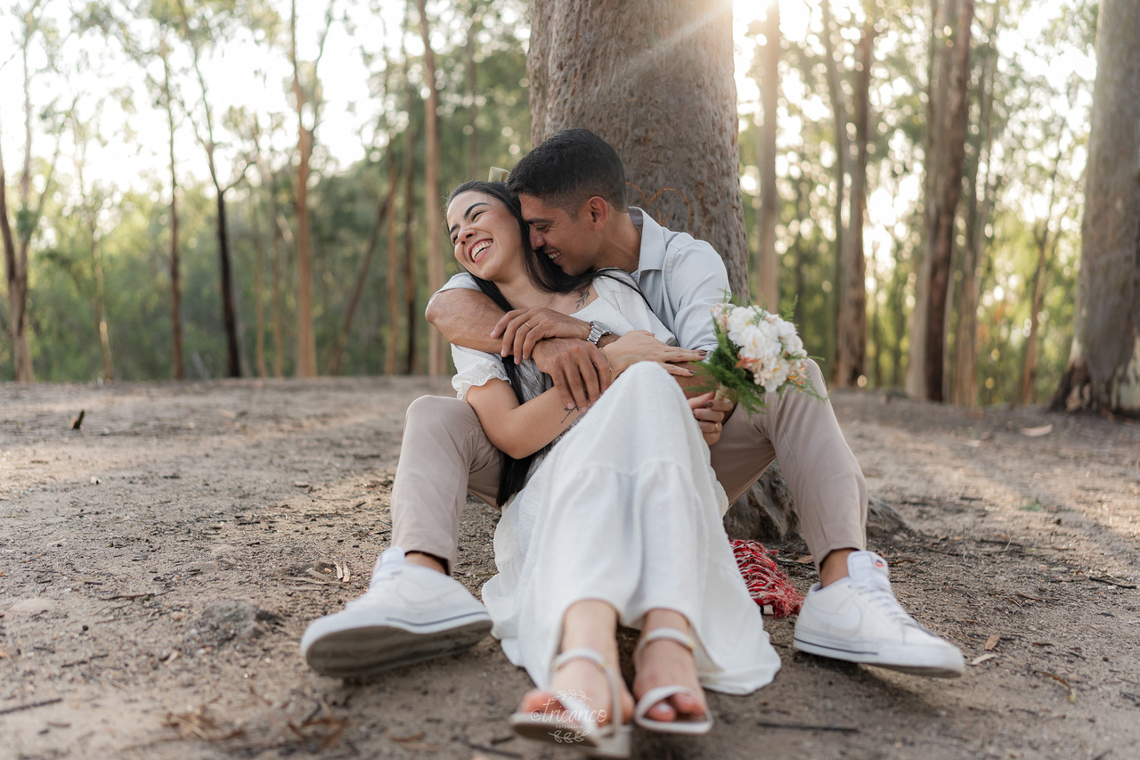 O ensaio de Tamara e Fábio no Parque da Cidade, em Niterói. Começou de forma arrebatadora: Tamara vestia um delicado traje branco que remetia ao universo da noiva, enquanto Fábio usava roupas em tons claros. Entre as imponentes árvores de eucaliptos, o casal trouxe leveza, sofisticação e uma conexão visível em cada olhar. As imagens ganharam um ar elevado e elegante, refletindo exatamente a essência de um amor pronto para o altar.